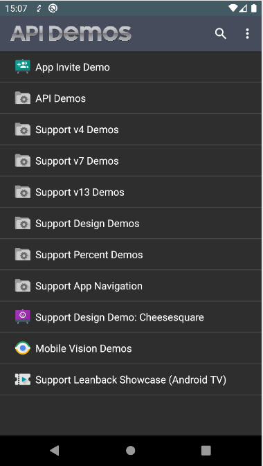 Elemanı id ile bularak işlem yaptıracağım. Eleman, findElementByID ile bulunabilir ama bu örnekte aynı id’li birden fazla eleman olduğu için findElementsById ile hepsini önce bir liste içine atıyorum. Daha sonra listeyi for döngüsü içine sokarak text özelliği API Demos olanı buldurup tıklama yaptıracağım.
